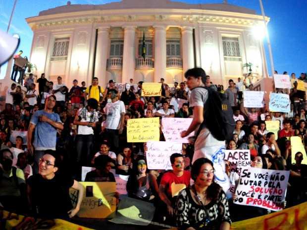 Os estudantes levantaram cartazes com frases do tipo: ‘O Acre também acordou’ (Foto: Eduardo Duarte/G1)